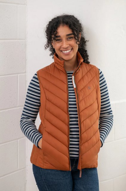 Made with a water repellent outer, the Laurel gilet is enhanced with an antique front zip with faux-leather puller and two useful front zipped pockets. The outer material benefits from being made from 100% Nylon, which offers enhanced durability.
